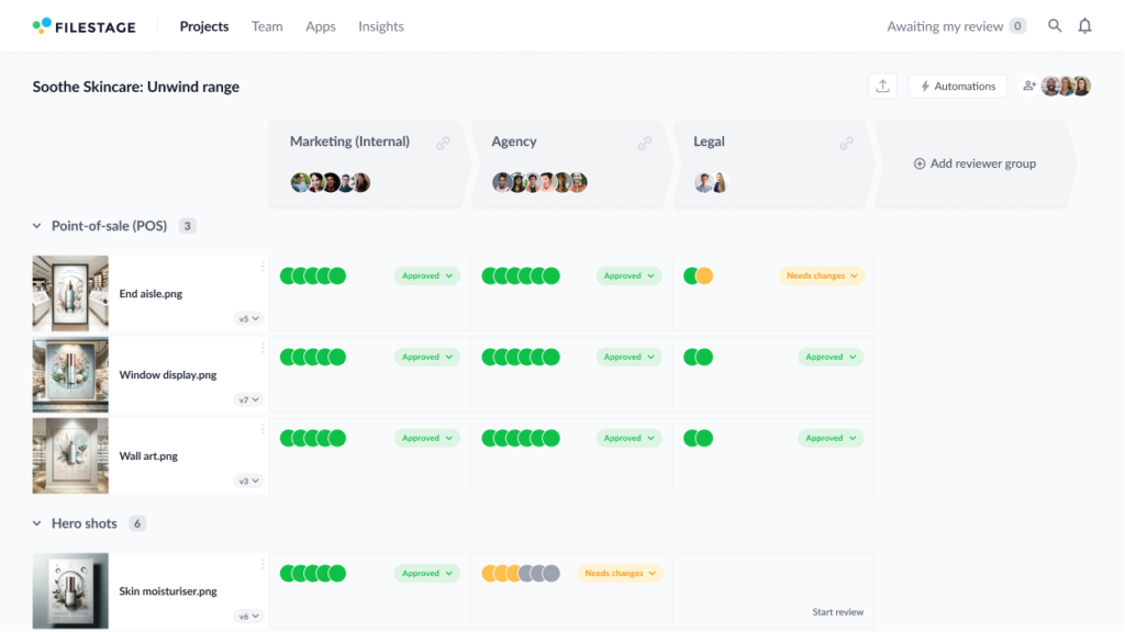 - Track approval statuses – With Filestage, automated real-time tracking shows approval statuses at a glance.
