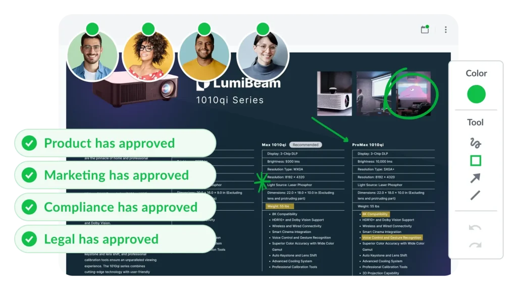 Document approval software is a platform that manages the entire review and sign-off process for documents and other content types. Instead of reviewing files over email and collecting feedback across scattered threads, it brings everything – comments, versions, approvals, and stakeholder communication – into one place. That way, marketing teams can move faster and maintain a clear record of every decision made.