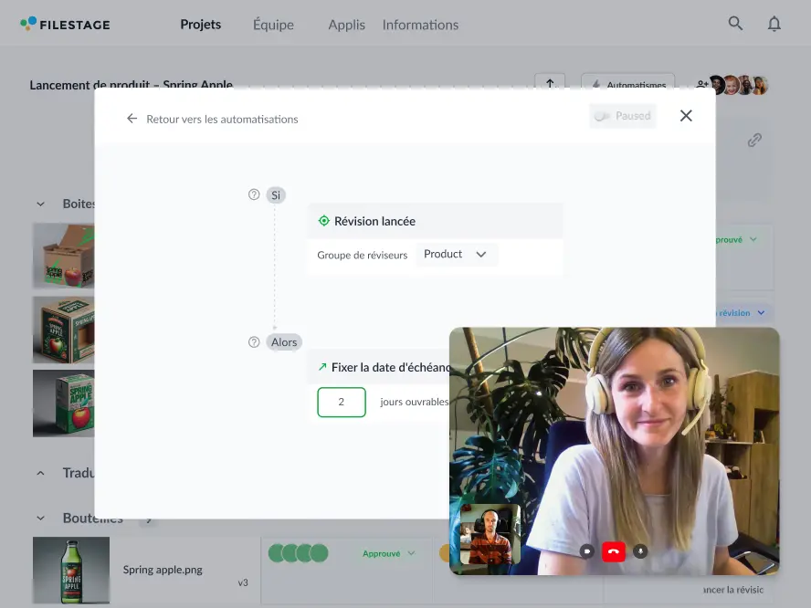 Absolument ! Filestage propose des intégrations natives avec des outils comme Google Drive, Adobe Creative Cloud et Microsoft Teams. Nous avons également une connexion Zapier que vous pouvez utiliser pour vous connecter à des centaines d’autres outils.
